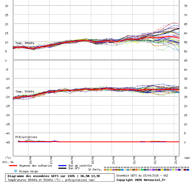 Grafico ensemble coordinata 36.5N - 13.5E