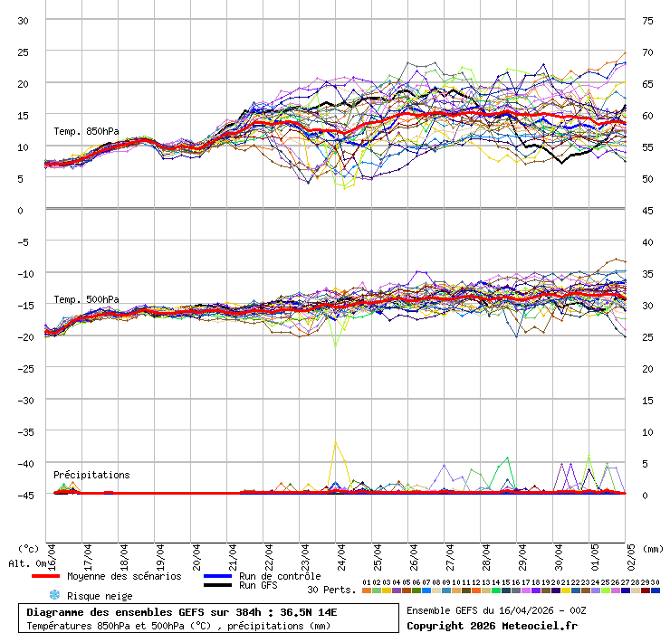 sono riportate la temperatura a 850 hPa (pari ad una quota mediamente di circa 1400 m slm)