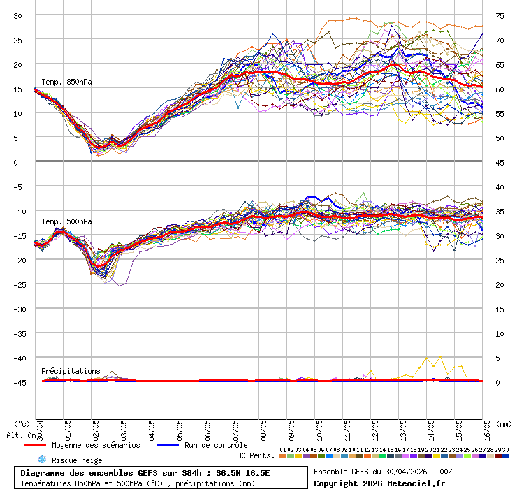Grafico ensemble coordinata 36.5N - 16.5E
