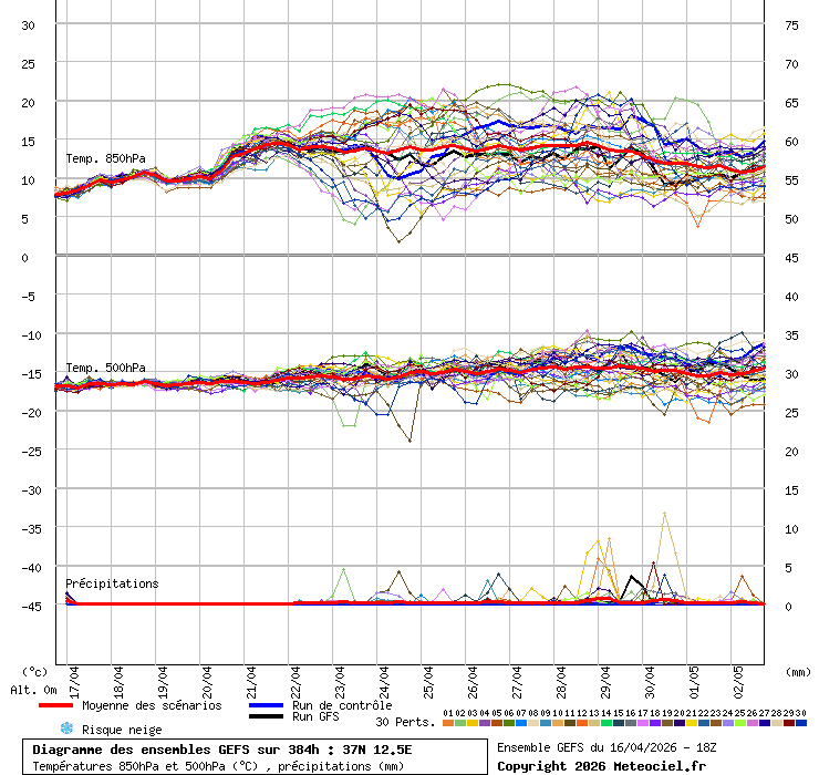 sono riportate la temperatura a 850 hPa (pari ad una quota mediamente di circa 1400 m slm)