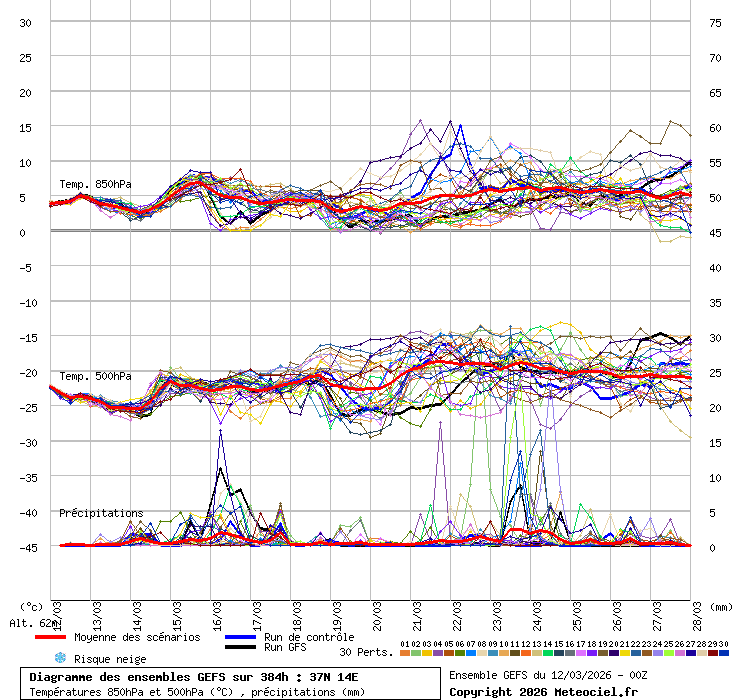 linea nera la previsione ufficiale e con la linea rossa la media delle 20 previsioni.
