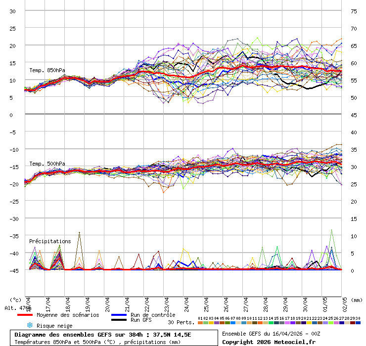 sono riportate la temperatura a 850 hPa (pari ad una quota mediamente di circa 1400 m slm)