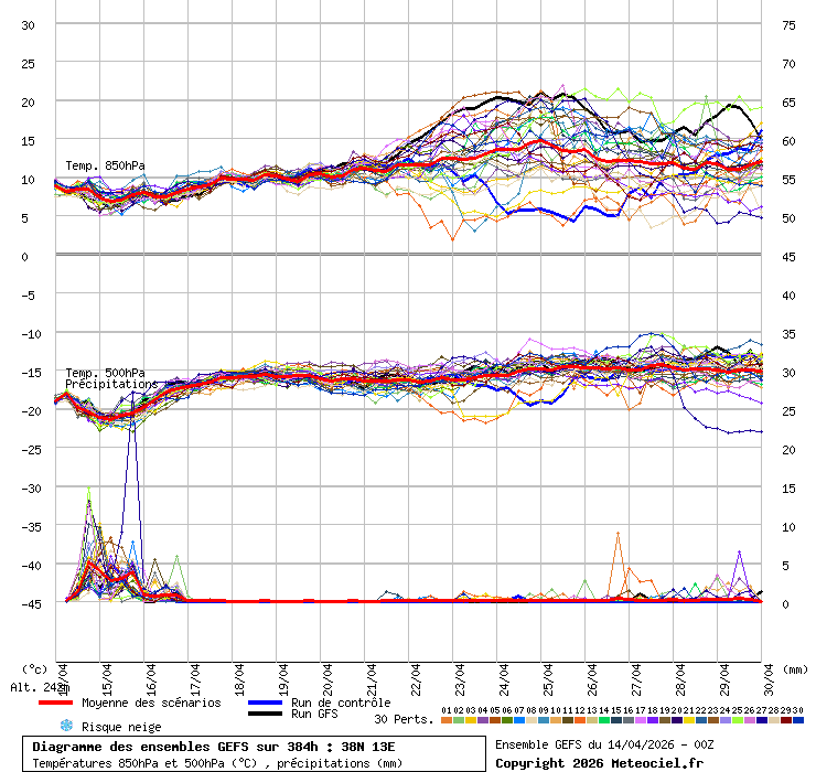 linea nera la previsione ufficiale e con la linea rossa la media delle 20 previsioni.