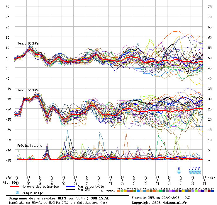 linea nera la previsione ufficiale e con la linea rossa la media delle 20 previsioni.