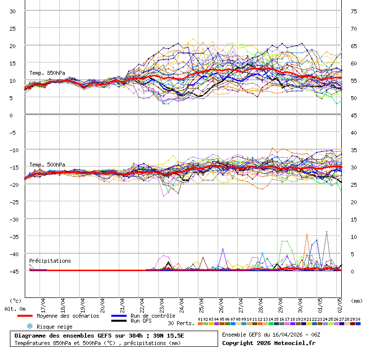 sono riportate la temperatura a 850 hPa (pari ad una quota mediamente di circa 1400 m slm)