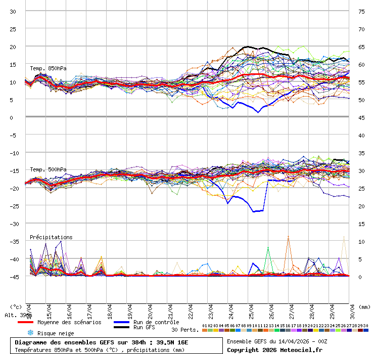 sono riportate la temperatura a 850 hPa (pari ad una quota mediamente di circa 1400 m slm)