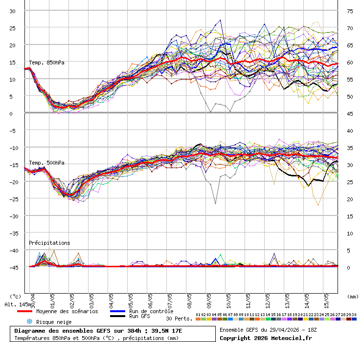 linea nera la previsione ufficiale e con la linea rossa la media delle 20 previsioni.