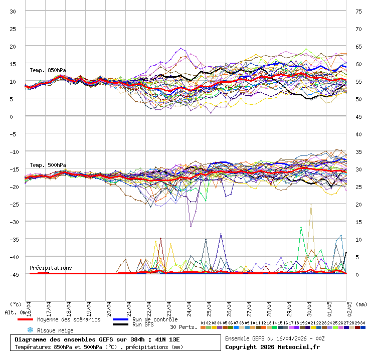 sono riportate la temperatura a 850 hPa (pari ad una quota mediamente di circa 1400 m slm)
