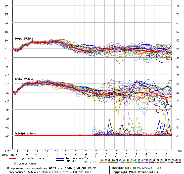 linea nera la previsione ufficiale e con la linea rossa la media delle 20 previsioni.