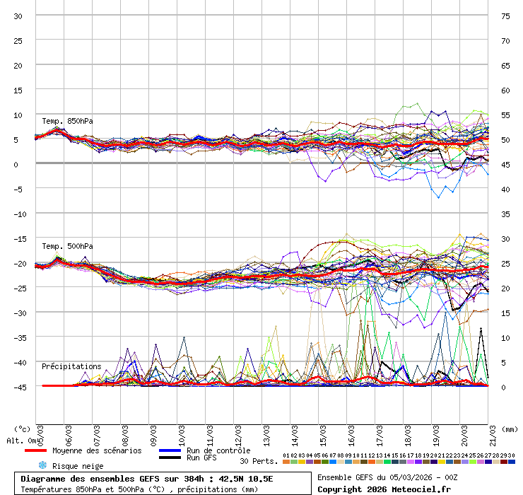 Grafico ensemble coordinata 42.5N - 10.5E