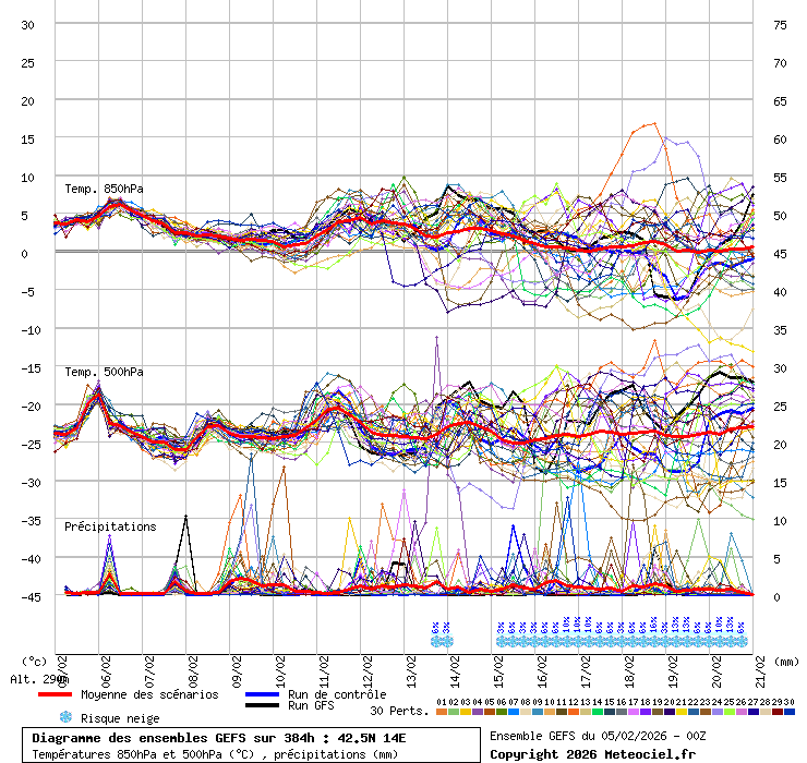linea nera la previsione ufficiale e con la linea rossa la media delle 20 previsioni.
