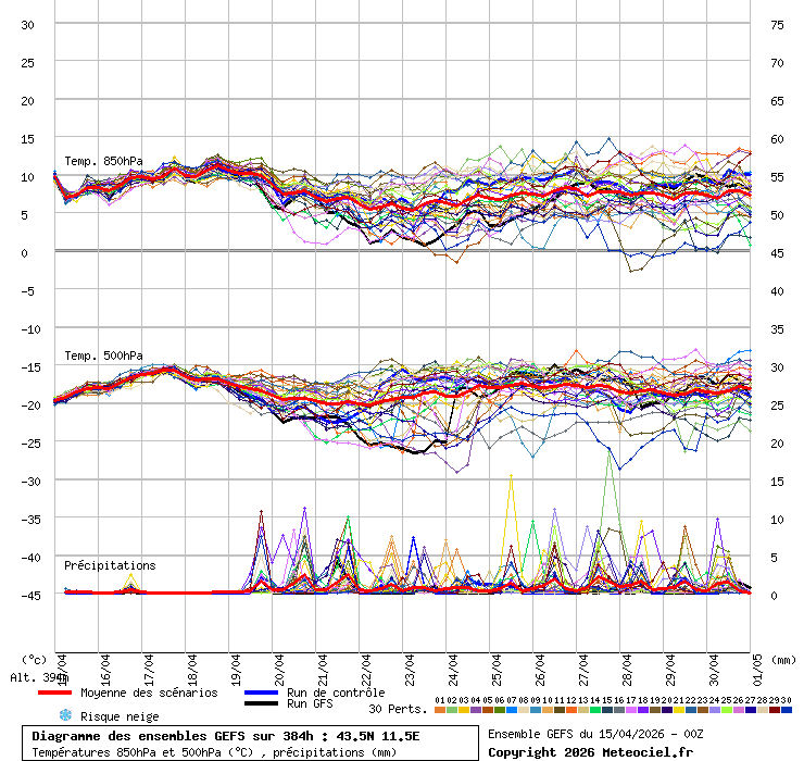 linea nera la previsione ufficiale e con la linea rossa la media delle 20 previsioni.