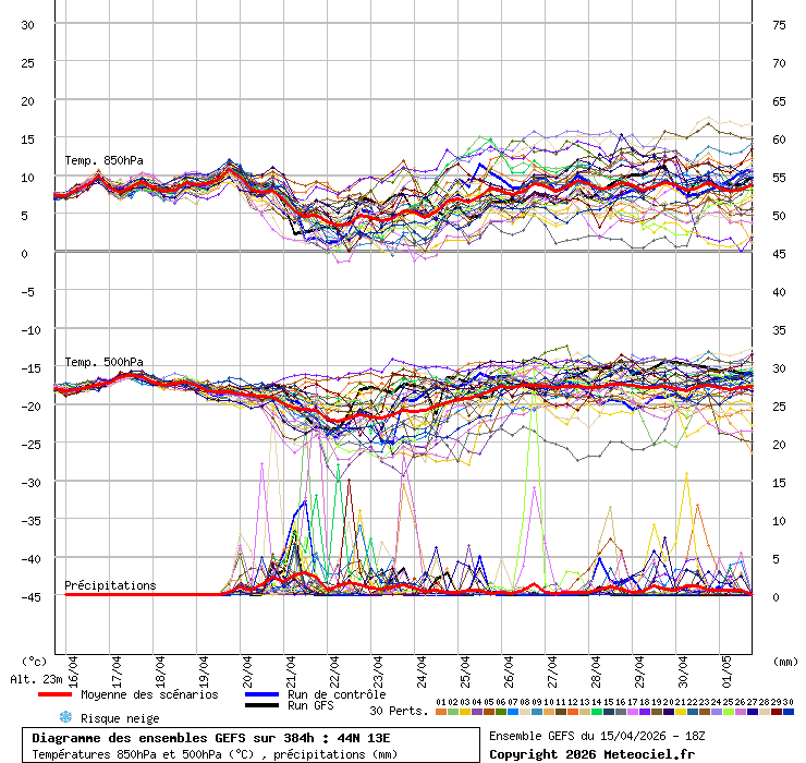 linea nera la previsione ufficiale e con la linea rossa la media delle 20 previsioni.