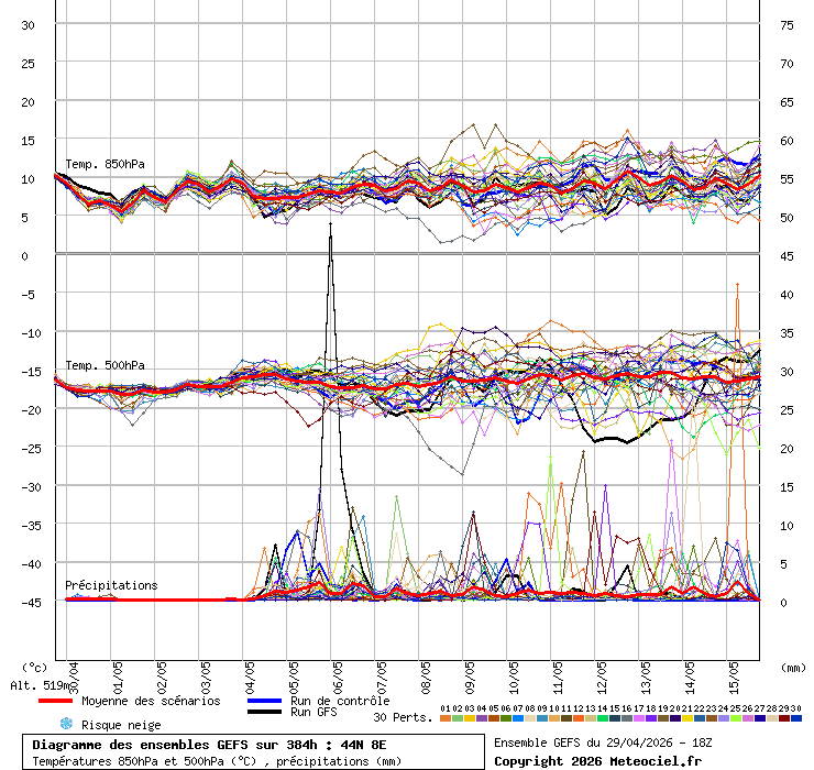 linea nera la previsione ufficiale e con la linea rossa la media delle 20 previsioni.