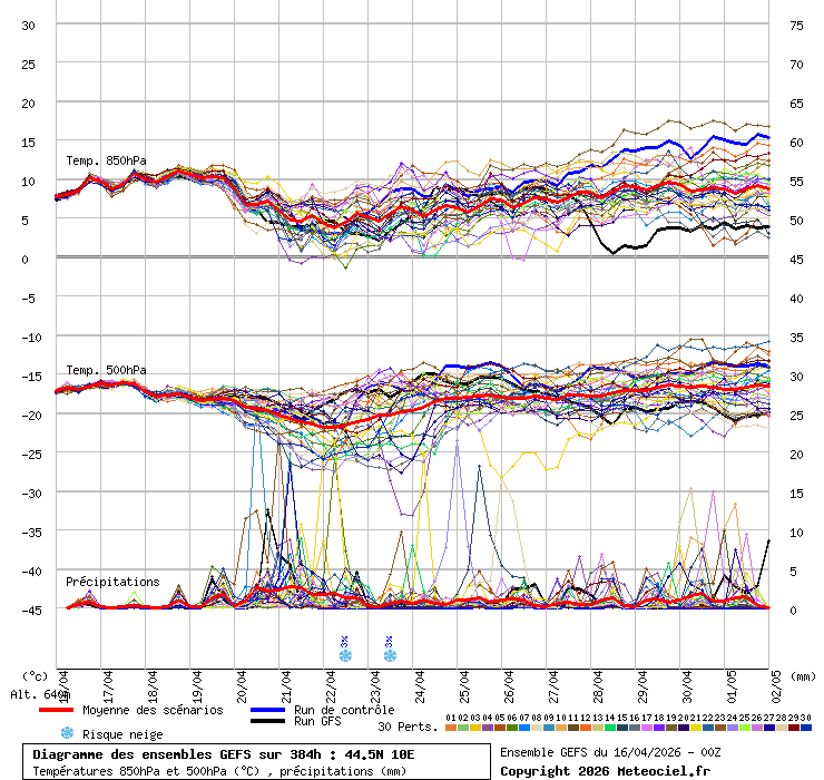 e la temperatura a 500 hPa (pari ad una quota mediamente di circa 5500 m slm) con valori in °C