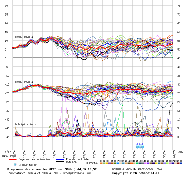 e la temperatura a 500 hPa (pari ad una quota mediamente di circa 5500 m slm) con valori in °C