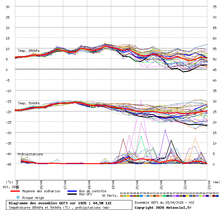 Grafico ensemble coordinata 44.5N - 11E