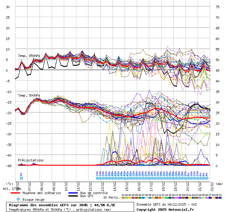 Grafico ensemble coordinata 44.5N - 6.5E