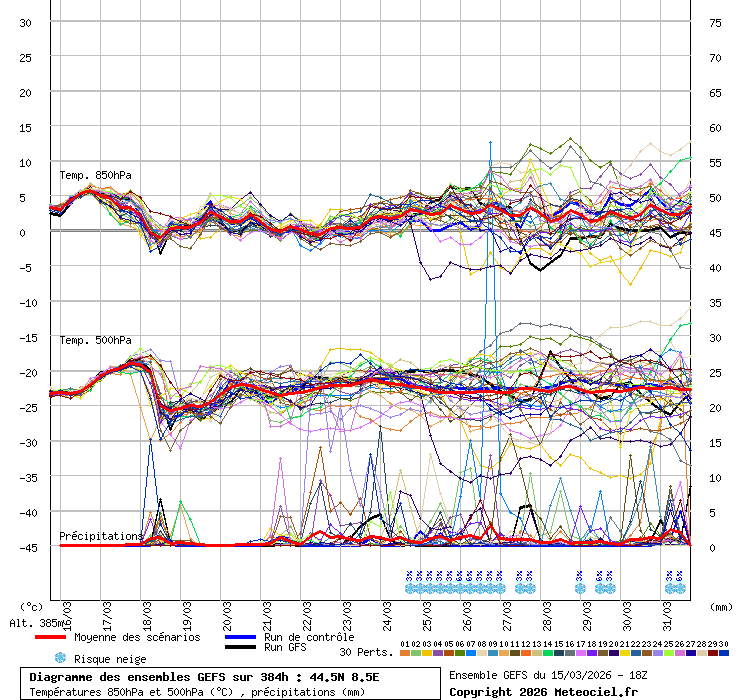 Grafico ensemble coordinata 44.5N - 8.5E