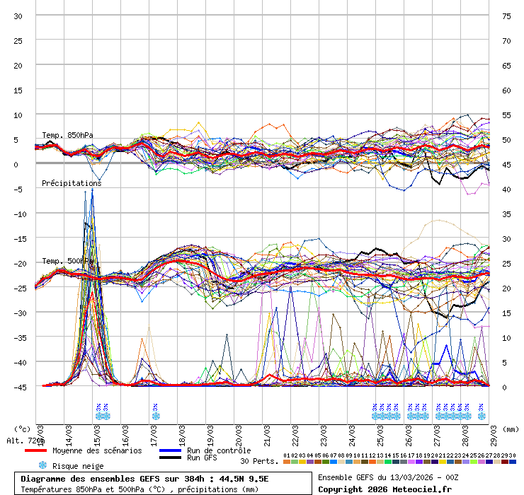 Grafico ensemble coordinata 44.5N - 9.5E