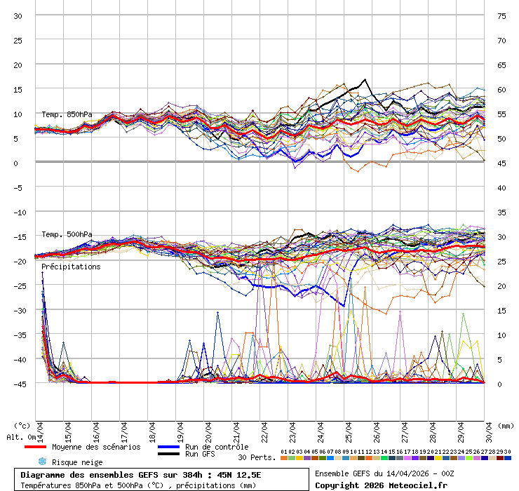 sono riportate la temperatura a 850 hPa (pari ad una quota mediamente di circa 1400 m slm)