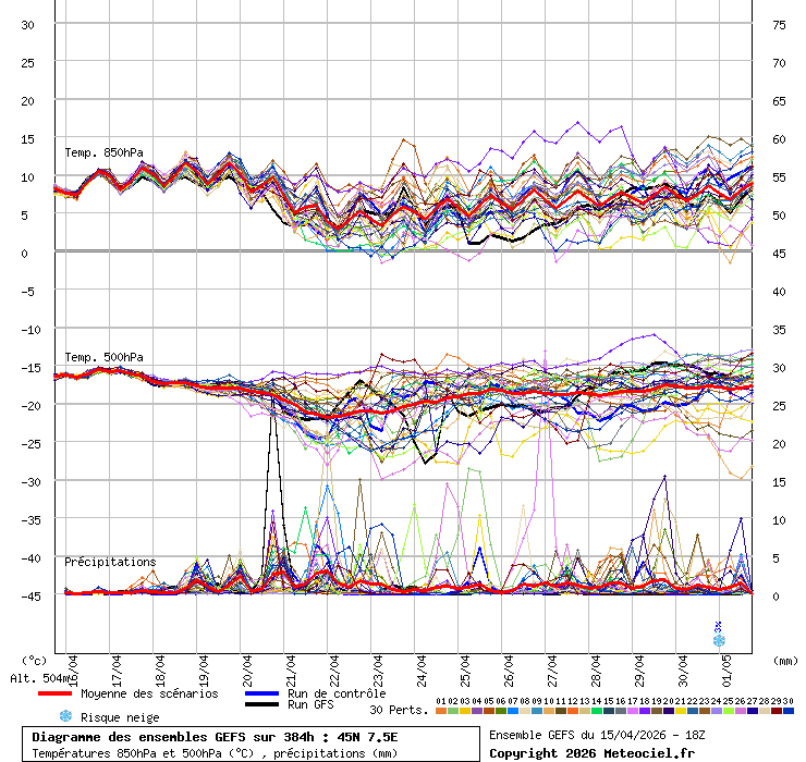 e la temperatura a 500 hPa (pari ad una quota mediamente di circa 5500 m slm) con valori in °C
