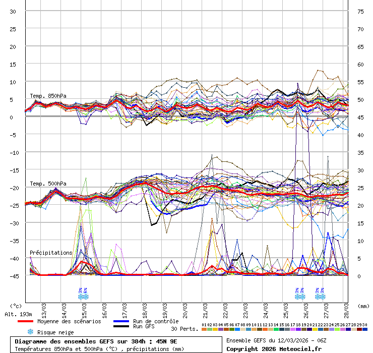 linea nera la previsione ufficiale e con la linea rossa la media delle 20 previsioni.