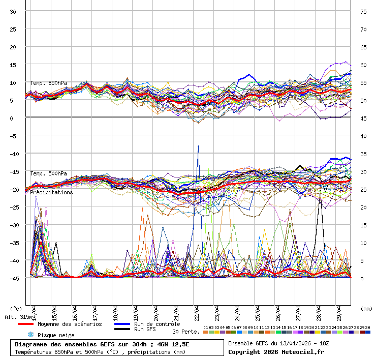 sono riportate la temperatura a 850 hPa (pari ad una quota mediamente di circa 1400 m slm)