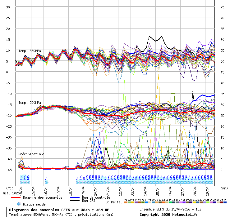 Grafico ensemble coordinata 46N - 8E