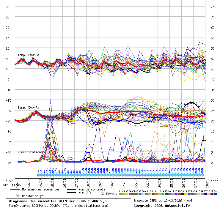 linea nera la previsione ufficiale e con la linea rossa la media delle 20 previsioni.