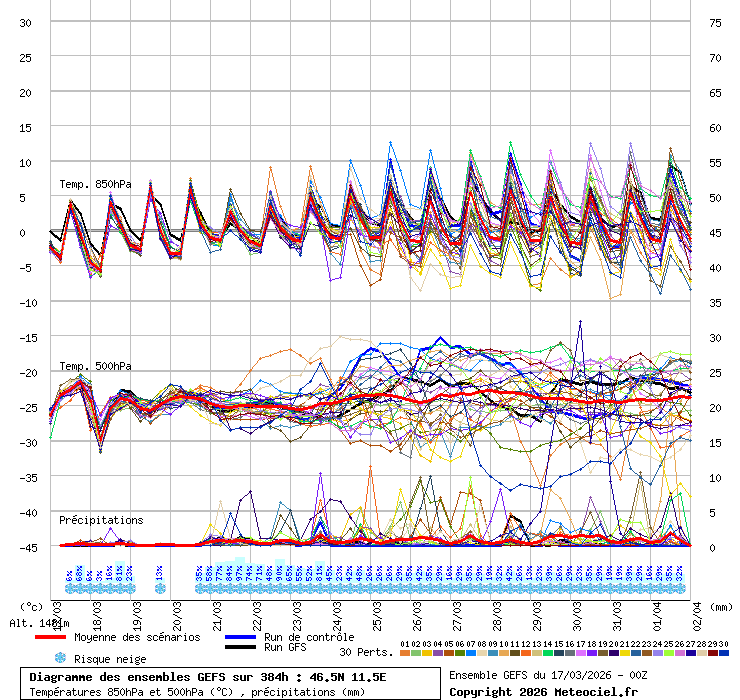 Grafico ensemble coordinata 46.5N - 11.5E